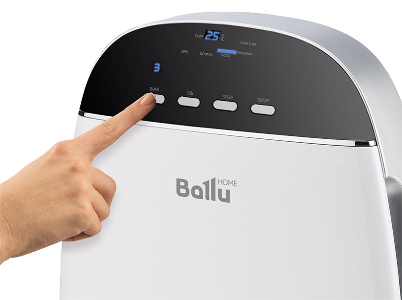 В очистителе воздуха Ballu AP-150 предусмотрены все функции и технологии, необходимые для эффективной и качественной очистки воздуха в помещении.5 ступеней очистки воздуха, 4 скорости работы вентилятора, ионизатор воздуха (отключаемый), 8-часовой таймер на отключение прибора, индикаторы температуры t°C в помещении и уровня чистоты воздуха. Для своевременной замены фильтров в очистителе автоматически учитывается срок работы фильтров.Очиститель обслуживает помещение площадью до 20 кв. метров.