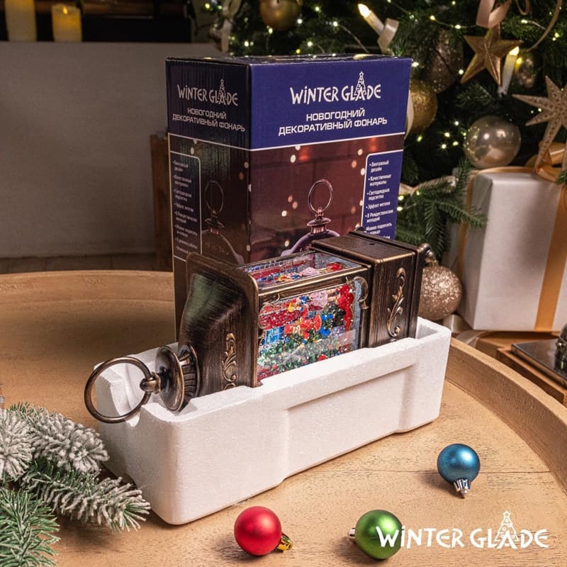 Декоративный новогодний фонарь Winter Glade станет ярким украшением дома в период новогодних и рождественских праздников. Работает фонарь от 3 пальчиковых батареек типа AА (в комплект не входят), USB шнура (входит в комплект) или сети 220V (адаптер в комплект не входит). Фонарь имеет 2 рабочих режима: 1 - подсветка, механизм мерцания, кружится снег и начинают играть по очереди 8 мелодий; 2 - подсветка + механизм мерцания без музыки.