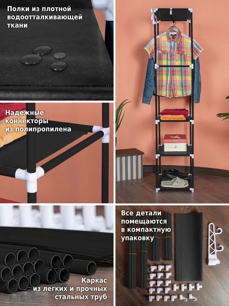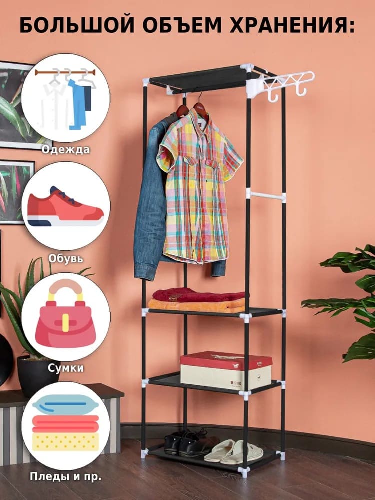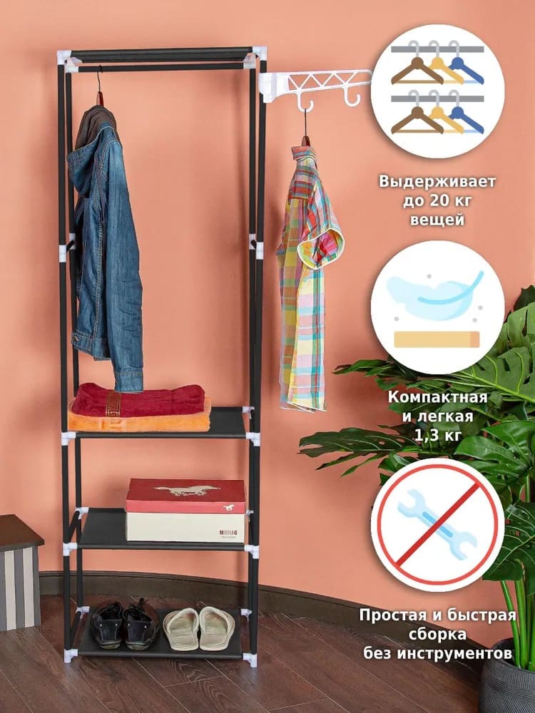 Вешалка напольная для одежды Helex Home W-03-1, черная
