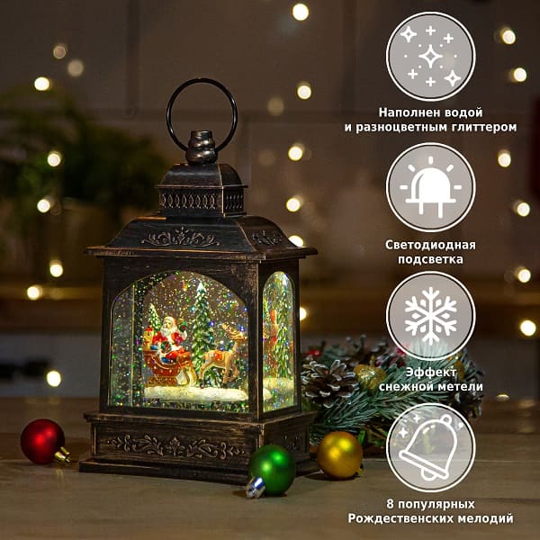 Новогодний фонарь Winter Glade Санта-Клаус на санях F428-1