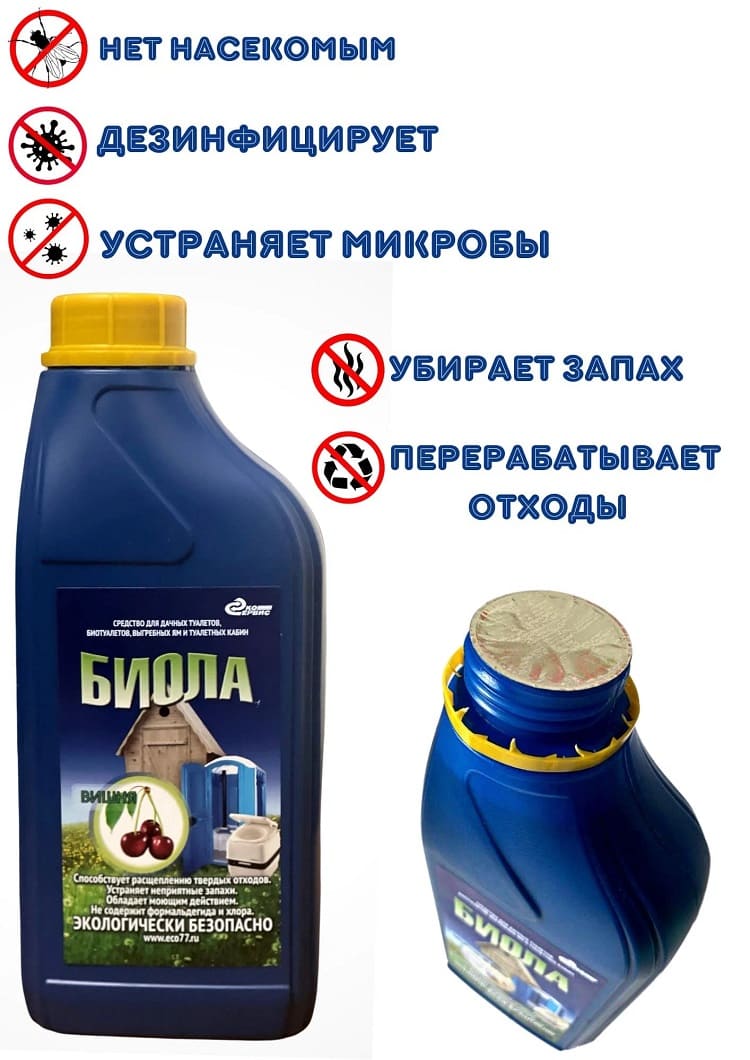 Жидкость экологичная и безопасная. Жидкость Биола состоит из биологически-разлагаемых компонентов и идеально подходит для быстрого расщепления отходов жизнедеятельности человека. Она не раздражает кожу и слизистую, не вызывает аллергических реакций. Жидкость можно использовать даже зимой - она не теряет свойств при замерзании.