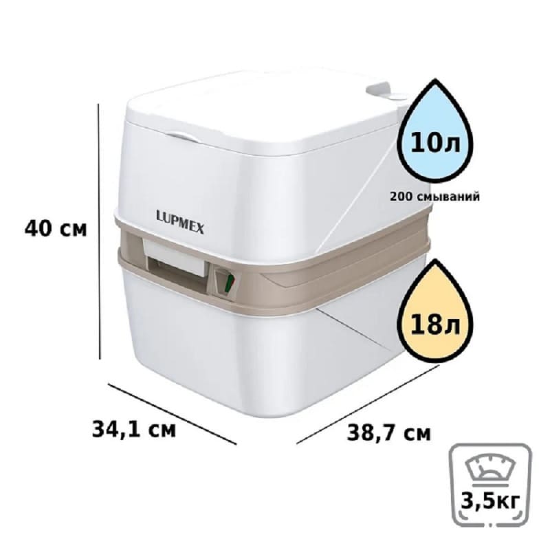 Биотуалет LUPMEX – простое и функциональное решение при отсутствии стационарной канализации. В модели есть бак для чистой воды на 10л (40 смываний), а также большой бак для отходов на 18 л с индикатором заполнения. Биотуалет имеет удобное эргономичное сиденье, поршневой насос и эффективную систему смыва.
