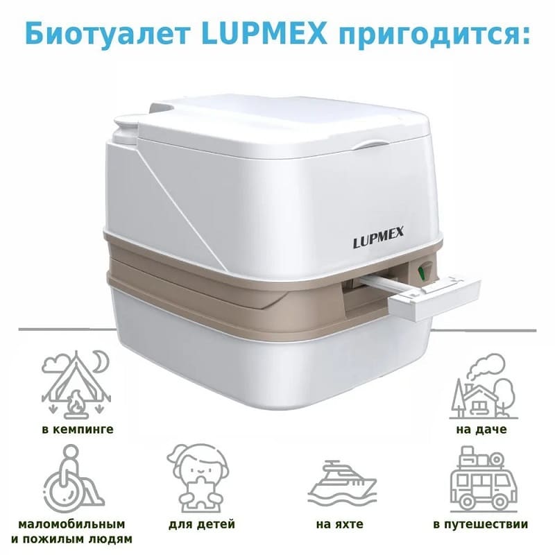 Биотуалет LUPMEX – простое и функциональное решение при отсутствии стационарной канализации. В модели есть бак для чистой воды на 10л (40 смываний), а также бак для отходов на 12 л с индикатором заполнения. Биотуалет имеет удобное эргономичное сиденье, поршневой насос и эффективную систему смыва.