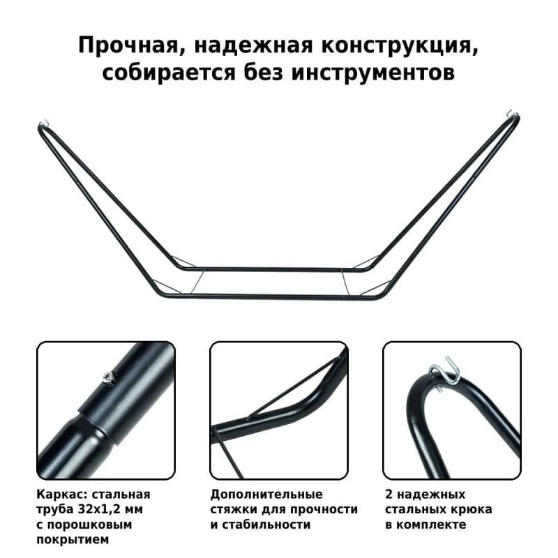 На ней Вы сможете разместить подвесной гамак в любом месте. Стойка легко разбирается и собирается, выдерживает нагрузку до 120 кг.
