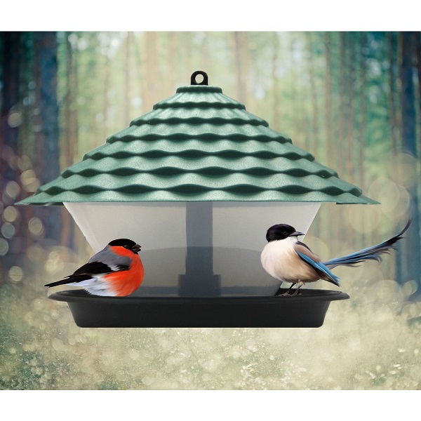 Кормушка уличная для мелких лесных и парковых птиц. Благодаря устойчивости к воздействию ненастной погоды уличную кормушку для птиц можно разместить на даче, в парке, во дворе и в любом другом месте обитания птиц. Изделие выполнено из прочного экологичного пластика и сохраняет корм сухим и чистым, при этом дозируя количество. Также вы можете выбрать удобный вариант установки, например: на шнуре, черенке или даже на земле.