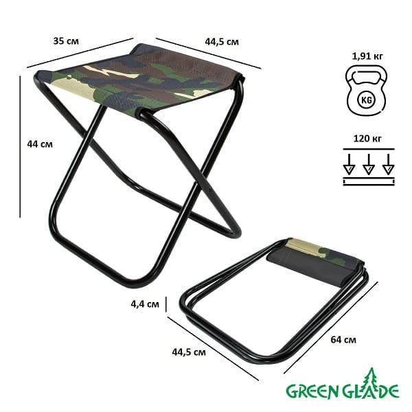 Удобный и компактный складной стул-табурет Green Glade РС230 идеально подходит для отдыха на природе, даче, рыбалке. Стул можно без труда разложить, а в собранном виде он занимает минимальное количество места, поэтому его можно хранить в любом уголке дома или брать с собой, поместив, например, в сумку или рюкзак.