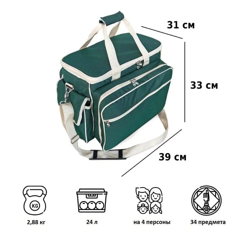 Изотермическая сумка-холодильник на 30 литров с пикниковым набором на 4 персоны
