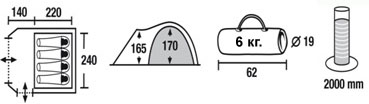 Размер (ширина / длина / высота) см: 240/220+140/170-165