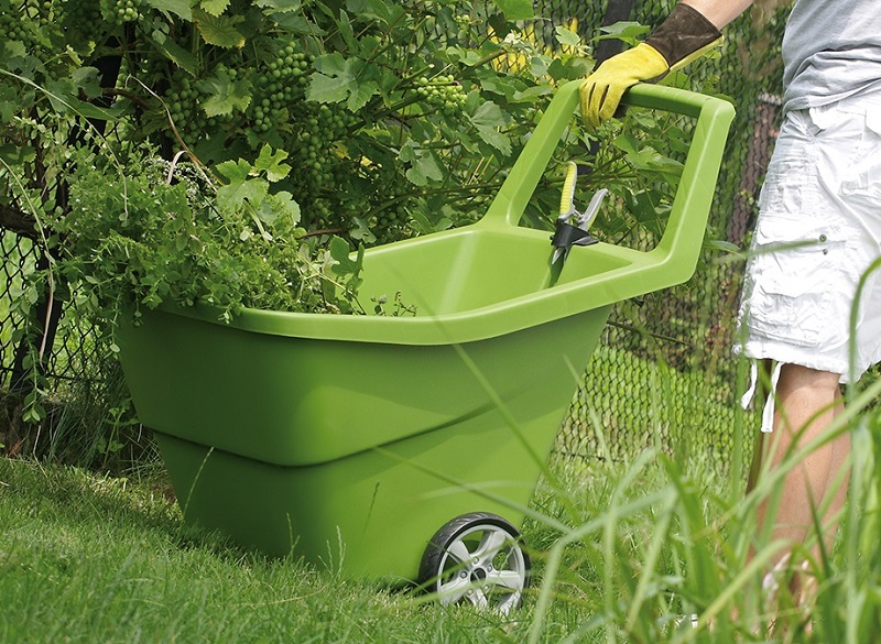 приусадебном хозяйстве, в гараже, подвале, для вывоза мусора и уборки двора, а также при стрижке газона. Тележка не ржавеет и не проминается. У тачки вмонтированная ручка, пластиковые колёса.