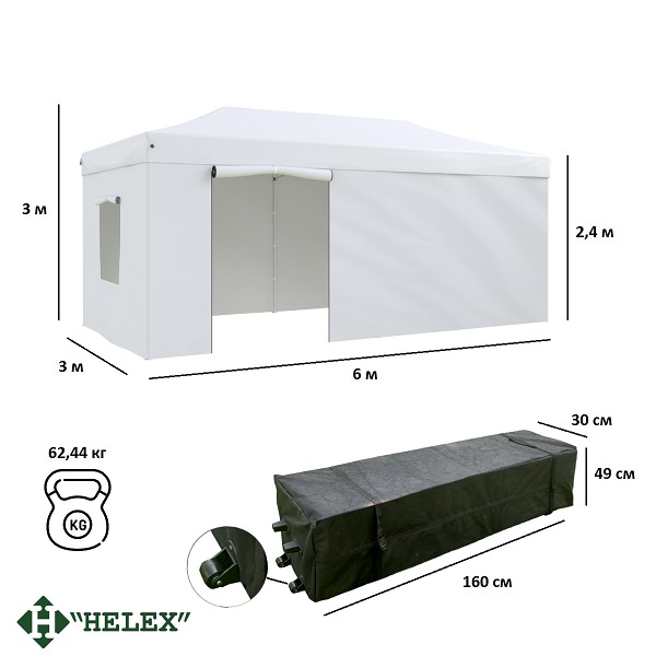 Шатер Helex 4360 S9.3, 3x6м белый