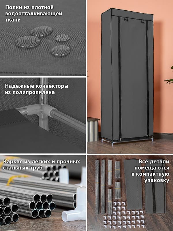 Обувница для прихожей HELEX Home W-06-1, этажерка закрытая с полками для обуви и других вещей, серый