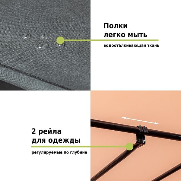 Вешалка напольная с полками для одежды собирается легко и быстро как мебель из Икеа (IKEA). Время сборки от момента открытия коробки до получения готового стеллажа с рейлом и полками займет всего 10-15 минут. Инструкция по сборке вешалки прилагается, поэтому собрать готовую систему хранения под силу не только любому взрослому человеку, но и подростку. Также эта мебель для хранения вещей легко разбирается, поэтому при необходимости ее можно перевезти на дачу или в загородный дом в легковом автомобиле или общественным транспортом в сумке.